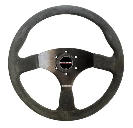 View full detailsMotamec Race Rally Steering Wheel Semi Dish 350mm Dark Grey Suede Black Spoke